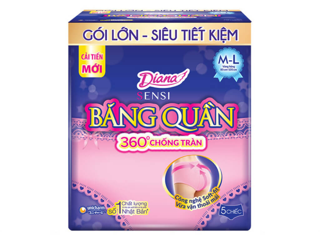 Băng Vệ Sinh Diana là dòng băng vệ sinh đến từ thương hiệu Diana (thuộc tập đoàn Unicharm Nhật Bản). Băng vệ sinh Diana ban đêm thiết kế dạng quần có thể thay thế như quần lót với chất liệu bông mềm mại, không gây kích ứng da, thích hợp cho vùng da nhạy cảm của vùng kín.