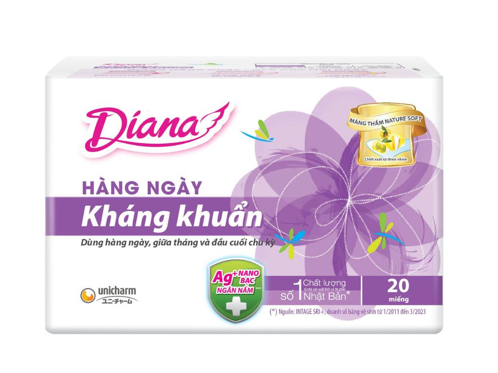 Băng Vệ Sinh Diana Hàng Ngày Kháng Khuẩn là dòng sản phẩm băng vệ sinh không cánh đến từ thương hiệu Diana thuộc tập đoàn Unicharm Nhật Bản, được thiết kế dành cho mục đích sử dụng hàng ngày hoặc ngày đầu / ngày cuối của chu kỳ. Sản phẩm có bề mặt bông mềm mại, siêu mỏng nhẹ, cho cảm giác êm mềm tối đa "tựa như không". Đặc biệt, công nghệ vi sợi độc đáo siêu thấm hút giúp bạn luôn sạch sẽ và thoải mái mỗi ngày, cùng thiết kế vừa vặn và ôm sát giúp bạn tự tin trong mọi hoạt động.