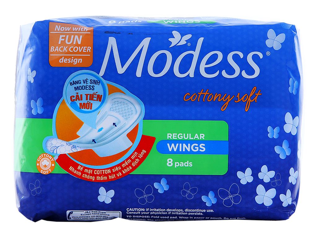 Mô tả ngắn: Băng vệ sinh thương hiệu Modess của Thái Lan được nhiều chị em tin dùng. Băng vệ sinh Modess siêu mềm có cánh 8 miếng cải tiến giúp ôm sát hơn và thấm hút nhanh hơn, mang lại cảm giác khô thoáng. Giúp khử mùi mang lại cảm giác sạch sẽ và thoải mái.