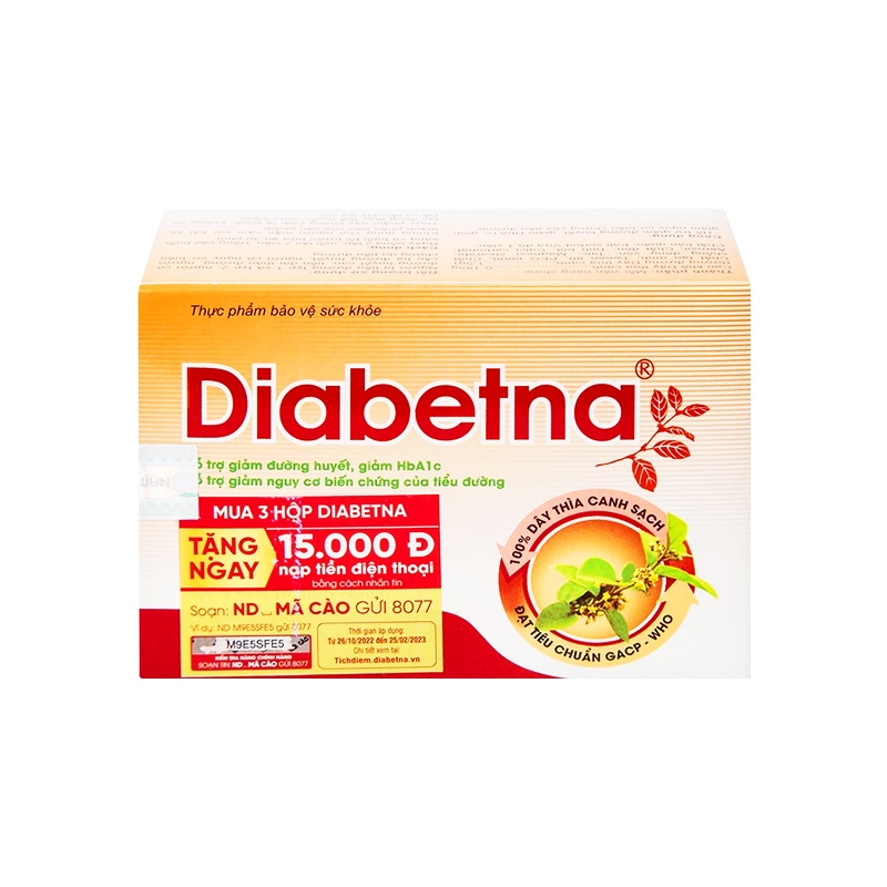 Diabetna với nguyên liệu chính là cao dây thìa canh sạch chuẩn quốc tế GACP cho người tiểu đường. Sản phẩm dùng được cho người có nồng độ đường huyết cao (tiền tiểu đường) và người bị tiểu đường type 1 và type 2.