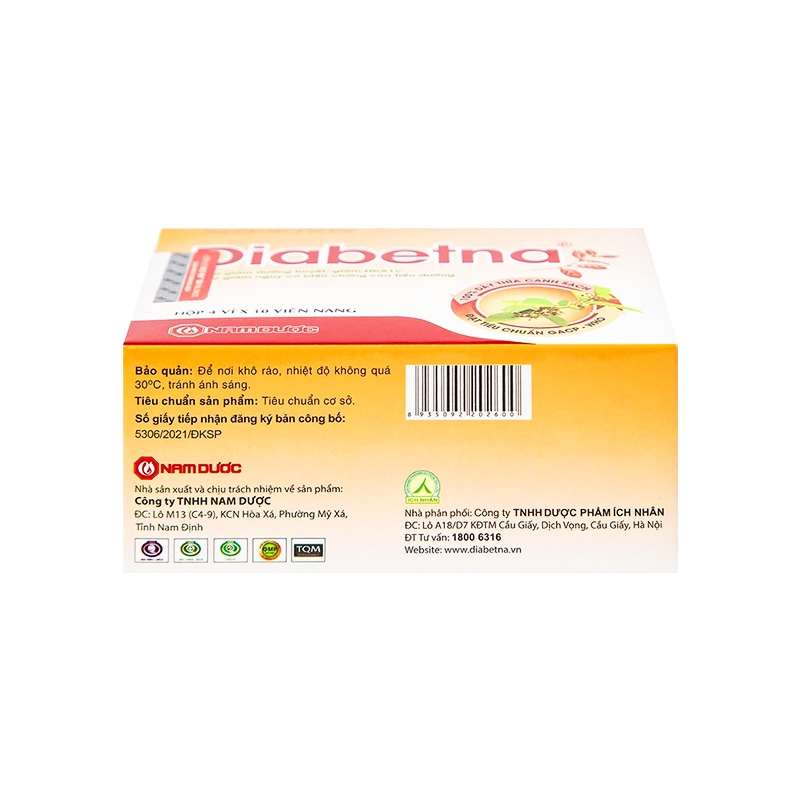 Diabetna Nam Dược là sản phẩm có tác dụng ổn định đường huyết, hỗ trợ điều trị tiểu đường và ngăn ngừa các biến chứng do tiểu đường gây ra. Sản phẩm được bào chế ở dạng viên uống, dùng 2 lần một ngày vào sáng, tối và trước bữa ăn 30 phút.