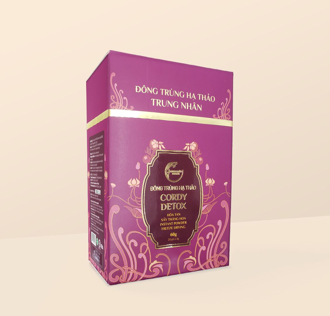 Đông Trùng Hạ Thảo Cordy Detox là sự kết hợp giữa măng cụt, lá sen, đông trùng hạ thảo, curcumin nano và maltodextrin. Dạng trà hòa tan tiện lợi phù hợp với lối sống hiện đại, có thể dùng hằng ngày như một liệu pháp detox nhẹ nhàng, an toàn và hiệu quả.