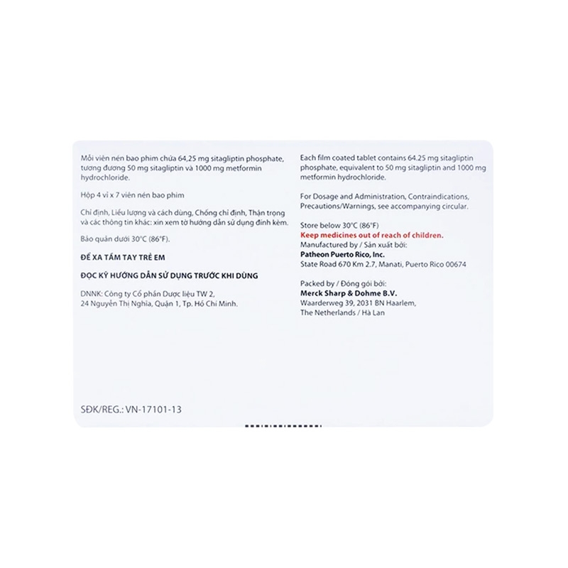 Thành phần: Metformin hydrochloride, Sitagliptin