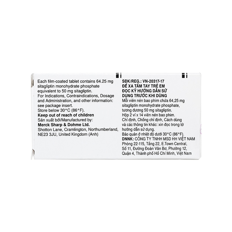 Mô tả ngắn: Januvia 50 mg được sản xuất bởi Merck Sharp & Dohme Limited, với thành phần chính Sitagliptin phosphate monohydrate, là thuốc dùng để điều trị đái tháo đường type 2. Viên nén bao phim Januvia 50 mg màu be nhạt, tròn, hai mặt lồi, có khắc số “112” trên một mặt và mặt kia trơn.
