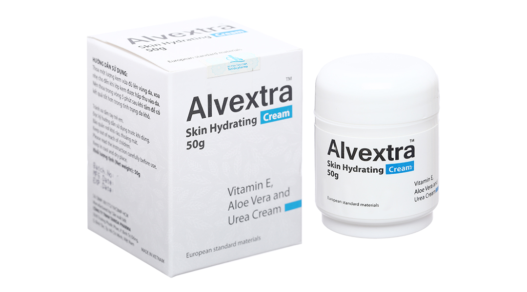 Alvextra Skin Hydrating Cream là sản phẩm kem dưỡng da có chứa Vitamin E, chiết xuất nha đam và Urea, phù hợp với nhu cầu chăm sóc da khô, da dễ nứt nẻ và vùng da có dấu hiệu sạm màu. Với kết cấu dịu nhẹ, dễ thoa, sản phẩm có thể sử dụng mỗi ngày để duy trì độ ẩm và mềm mại cho da.