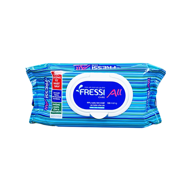 Khăn ướt FRESSI CARE đa năng là sản phẩm tiện lợi được thiết kế để làm sạch và dưỡng ẩm da, phù hợp cho nhiều mục đích sử dụng hàng ngày. Được sản xuất trong môi trường vô trùng với thành phần dịu nhẹ, không chứa cồn và hương liệu mạnh, khăn ướt FRESSI CARE an toàn cho cả da nhạy cảm. Sản phẩm có thể được sử dụng để lau tay, mặt, và các bề mặt khác, giúp bạn luôn cảm thấy sạch sẽ và tươi mát mọi lúc, mọi nơi.