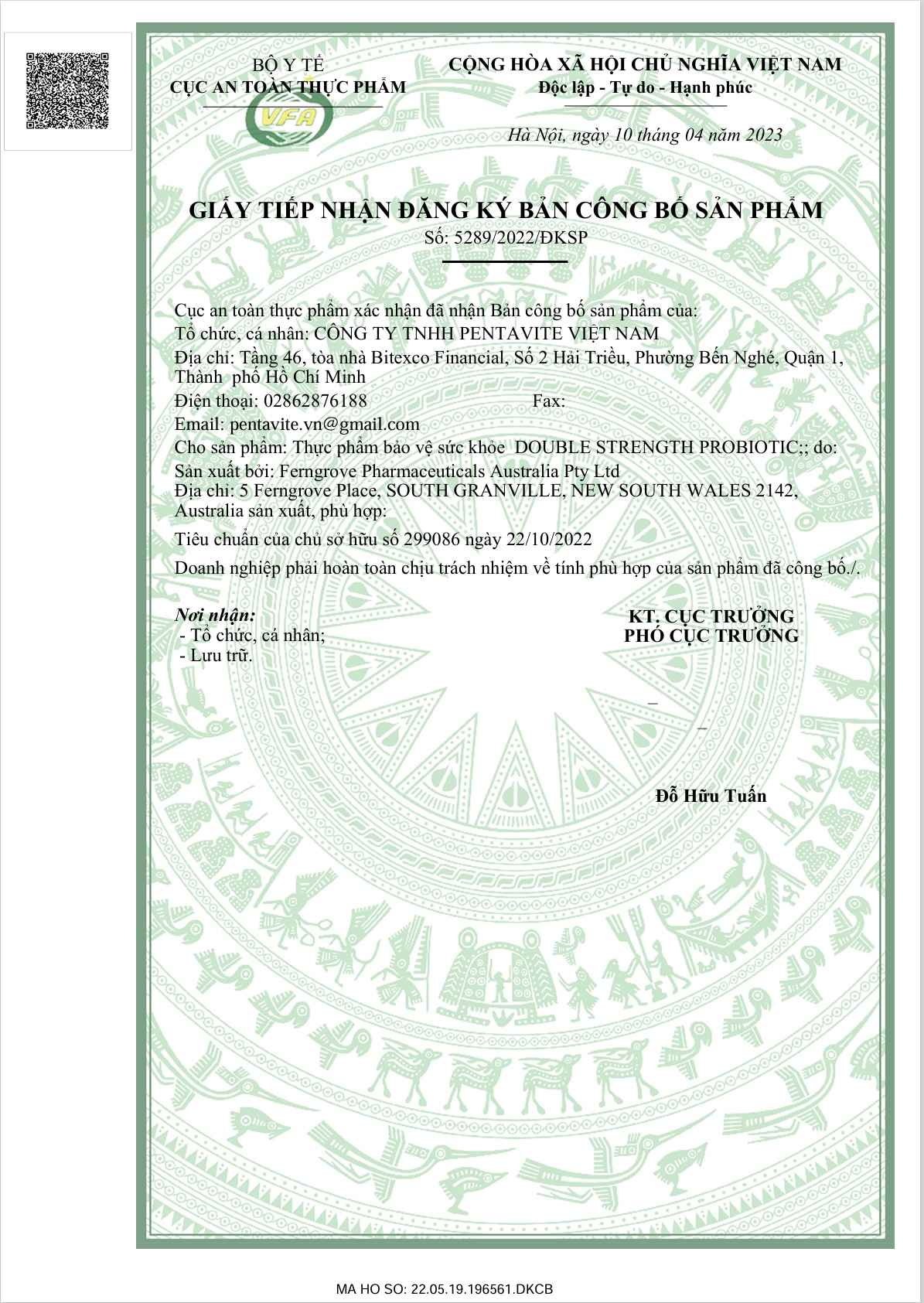 Số đăng ký: 5289/2022/ĐKSP