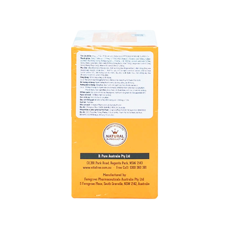 LunaRosaQ Immune Super C+ được sản xuất tại Úc bởi Ferngrove Pharmaceuticals Australia Pty Ltd, một đơn vị uy tín với các tiêu chuẩn chất lượng nghiêm ngặt.