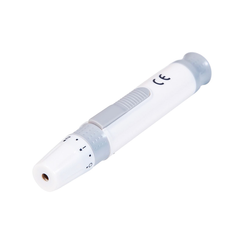 * Lắp kim vào bút để lấy máu, sau đó hai ngón tay cầm ở giữa cây bút, tay còn lại cầm ở phía đuôi bút để rút ra phía sau (lên cò).