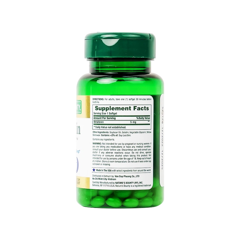 Nature's Bounty Melatonin là sản phẩm của Nature's Bounty - thương hiệu chăm sóc sức khỏe nổi tiếng của Mỹ. Nature's Bounty cung cấp sản phẩm bổ sung có chất lượng và giá trị vượt trội bằng cách kết hợp những đột phá mới nhất trong khoa học dinh dưỡng với các thành phần tốt nhất. Sản phẩm từ Nature's Bounty đều được giám sát bởi các nhà khoa học, chuyên gia sản xuất và chuyên gia chất lượng để duy trì các tiêu chuẩn cao nhất trong từng sản phẩm.