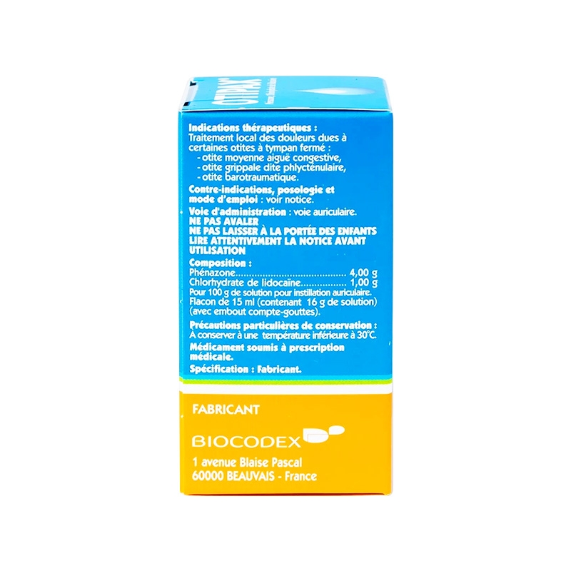 Mô tả ngắn: Thuốc Otipax của công ty Bicodex, thành phần chính là phenazon và lidocain hydroclorid, thuốc được dùng để điều trị triệu chứng đau tại chỗ, đặc biệt trong viêm tai bóng nước do virus trong bệnh cúm, viêm tai chấn thương do áp suất & viêm tai giữa cấp trong giai đoạn sung huyết.