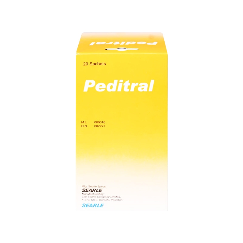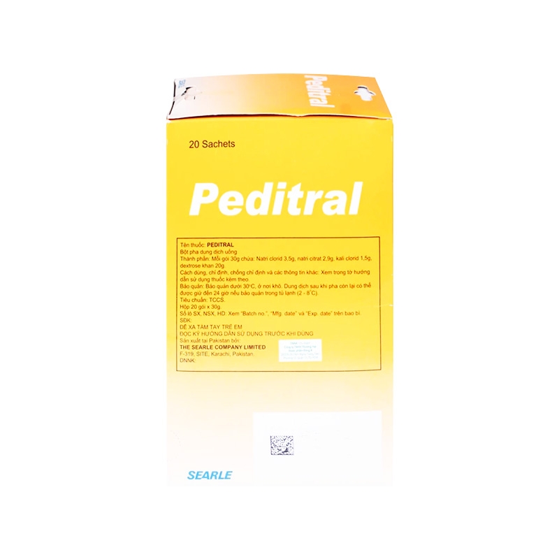 Mô tả ngắn: Bột pha uống Peditral vị cam là sản phẩm của The Searle Company Limited (Parkistan) có thành phần chính gồm Natri clorid, Kali clorid, Dextrose khan, Natri citrat được dùng để điều trị tiêu chảy cấp tính, điều trị và phòng ngừa mất nước bằng cách thay thế nước và chất điện giải bị mất do tiêu chảy.