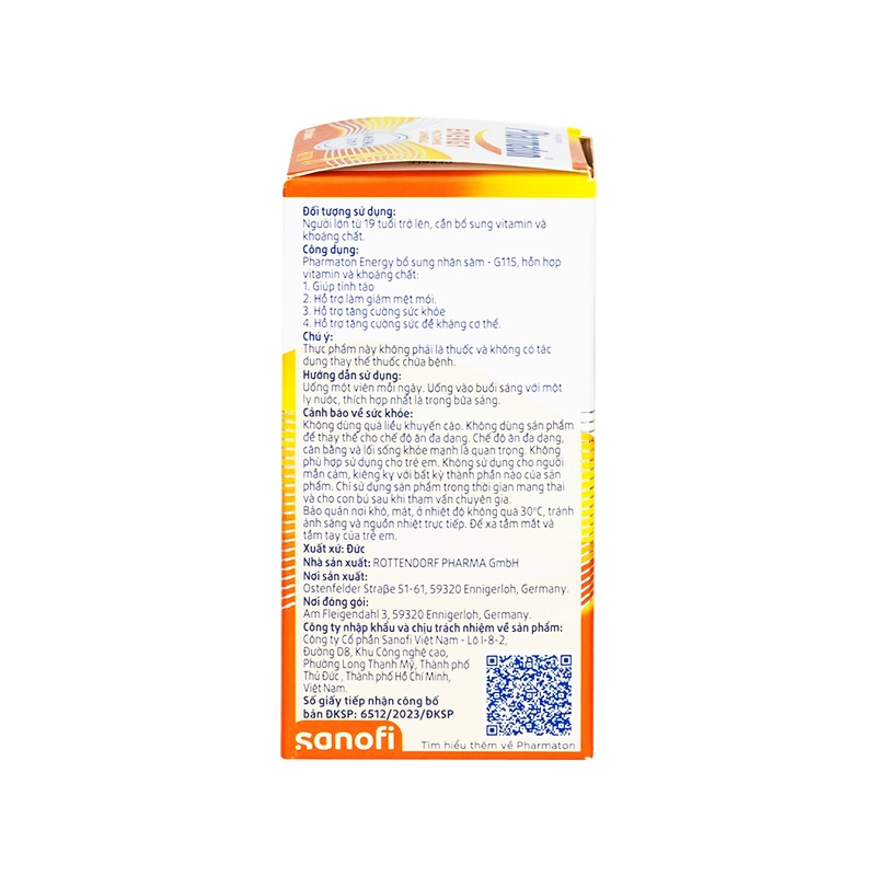 Pharmaton Energy được sản xuất bởi Rottendorf Pharma GmbH, Đức. Công ty TNHH Sanofi-Aventis Việt Nam là đơn vị nhập khẩu và chịu trách nhiệm về sản phẩm. Sanofi là một trong những tập đoàn dược phẩm hàng đầu thế giới. Để trở thành một người bạn đồng hành thật sự trong lĩnh vực chăm sóc sức khỏe cộng đồng, trong suốt 60 năm có mặt tại Việt Nam, Sanofi luôn lắng nghe mong đợi từ cộng đồng y khoa và các đối tác để hoàn thiện bộ máy hoạt động và mang đến các giải pháp chăm sóc sức khỏe tiên tiến, hiệu quả cho người Việt Nam.