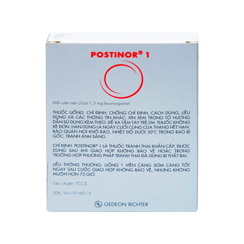 Mô tả ngắn: Postinor 1 với thành phần chính levonorgestrel, là thuốc ngừa thai khẩn cấp, có thể được dùng trong vòng 72 giờ sau các cuộc giao hợp không dùng biện pháp tránh thai, hoặc biện pháp tránh thai đã dùng không đạt hiệu quả.