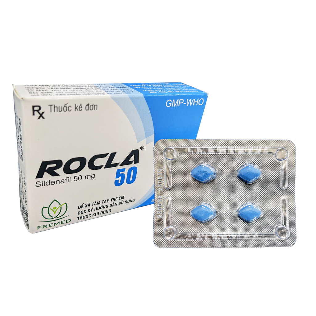 Mô tả ngắn: Thuốc Rocla 50 của Công ty cổ phần dược phẩm Fremed, thành phần chính là Sildenafil, là thuốc dùng để điều trị chứng rối loạn cương dương, hay còn gọi là chứng bất lực ở đàn ông. Thuốc được bào chế dưới dạng viên nén bao phim.