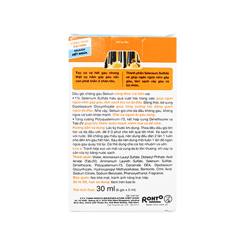 Dầu gội trị gàu Selsun Anti-Dandruff Shampoo được nghiên cứu và ứng dụng riêng cho da đầu gàu, chứa 1% thành phần Selenium Sulfide có tác dụng ức chế sự phát triển của vi nấm, loại bỏ các tế bào sừng hóa và ngăn ngừa viêm nhiễm, nhờ đó khắc phục hoàn toàn hiện tượng gàu và ngứa tồn tại. Sản phẩm còn sở hữu những đặc điểm ưu việt hơn so với các loại dầu gội thông thường. Có thể dùng Selsun trên mọi loại tóc, cả nam và nữ đều có thể sử dụng.