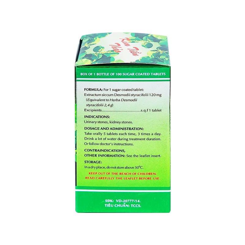 Chỉ định: Sỏi thận, Sỏi tiết niệu Chống chỉ định Dị ứng thuốc, Đái tháo đường (Tiểu đường), Đái tháo nhạt, Thiếu máu