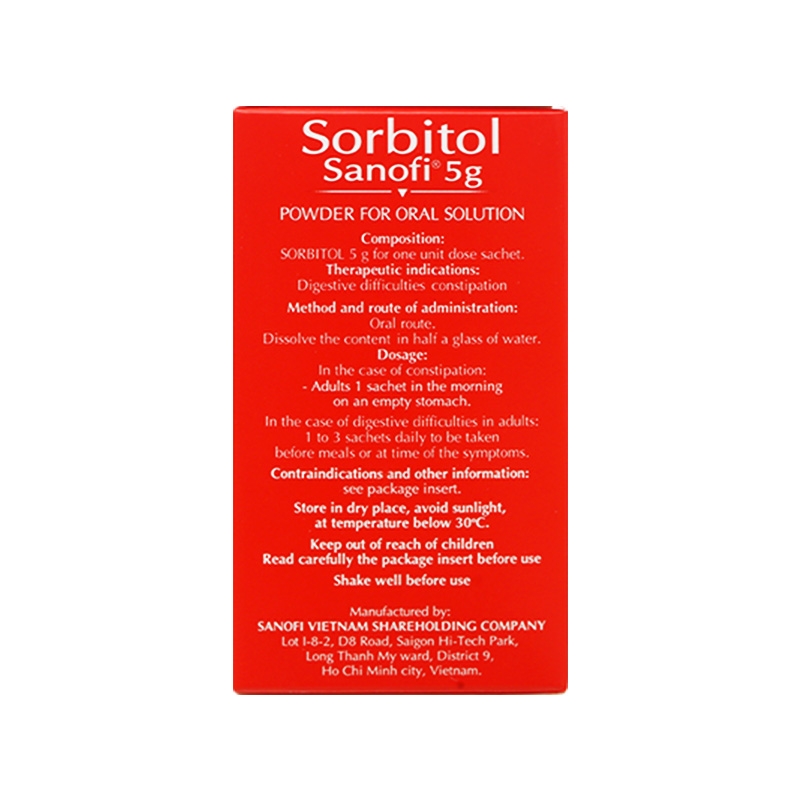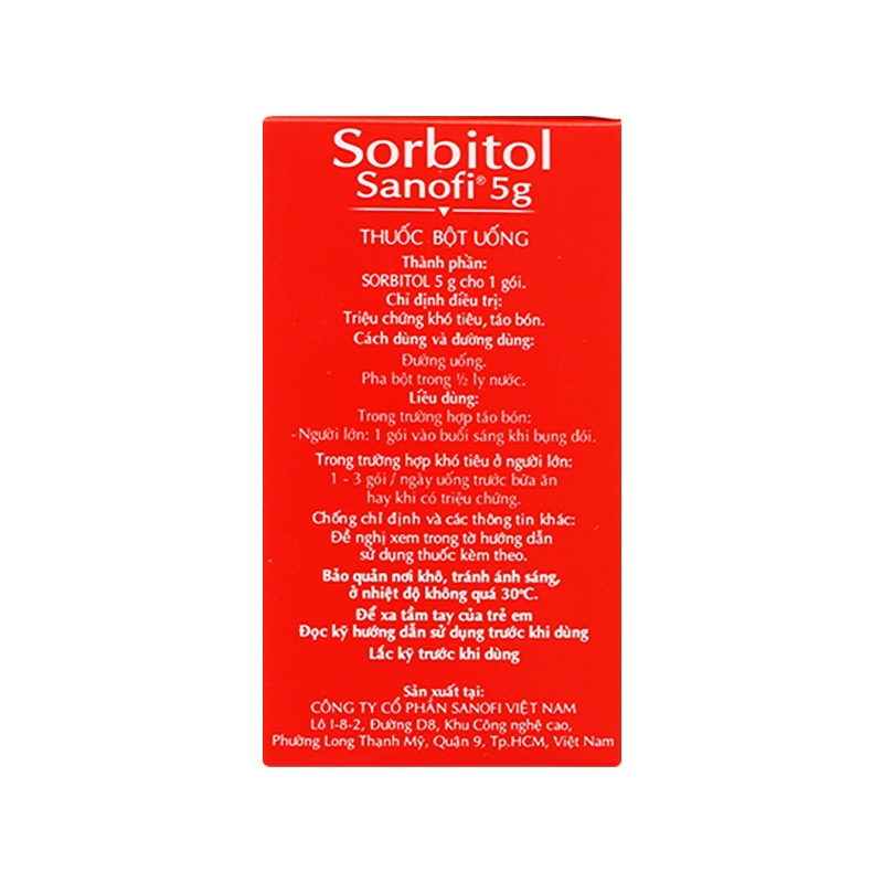 Mô tả ngắn: Thuốc Sorbitol Delalande được sản xuất bởi Công ty Cổ phần Dược phẩm Sanofi - Synthelabo Việt Nam, có thành phần chính là sorbitol. Thuốc Sorbitol Delalande được sử dụng trong điều trị triệu chứng táo bón, phụ trợ chứng khó tiêu. Thuốc Sorbitol Delalande được bào chế dưới dạng thuốc bột uống. Gói 5 g. Hộp 20 gói.