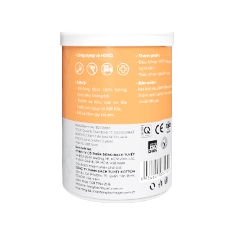 Tăm Bông Bạch Tuyết được sản xuất từ sợi bông thiên nhiên thuần khiết cùng với thân que làm từ nhựa nguyên sinh cao cấp, mang lại cảm giác mềm mại, khả năng hút nước cực tốt.