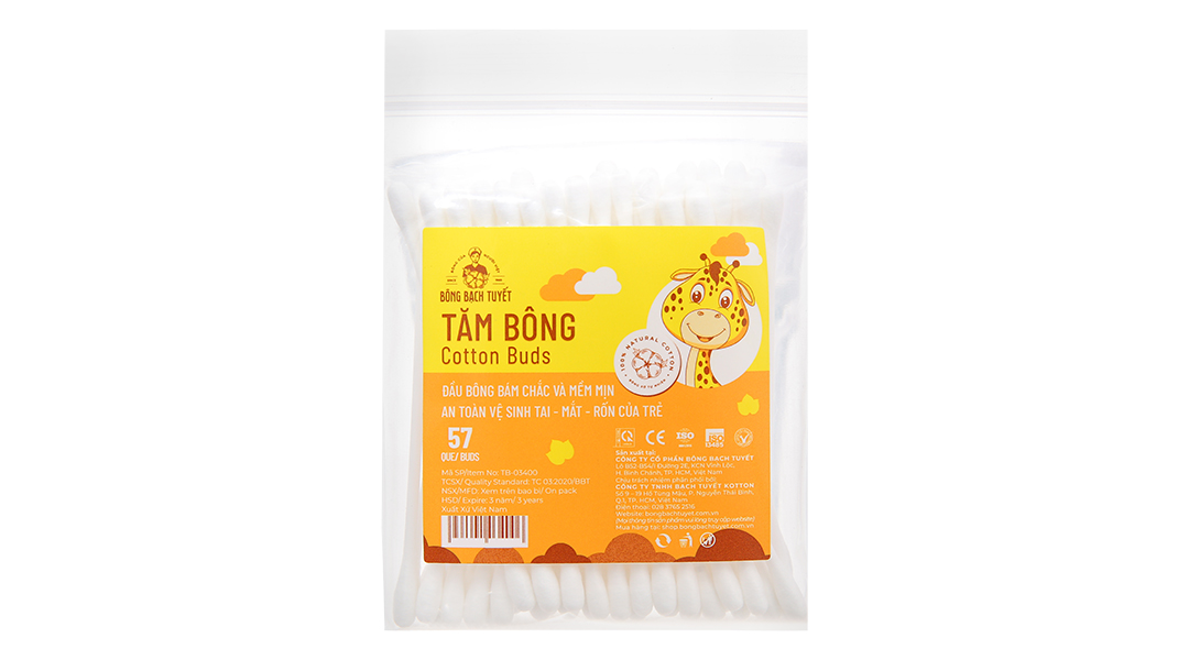 Tăm bông trẻ em Bông Bạch Tuyết với đầu bông sản xuất từ 100% bông xơ tự nhiên, mềm mại, an toàn. Sử dụng công nghệ định hình đầu bông tiên tiến giúp tăng độ kết dính, cố định đầu bông. Que nhựa có độ đàn hồi, chịu được nhiệt độ cao.