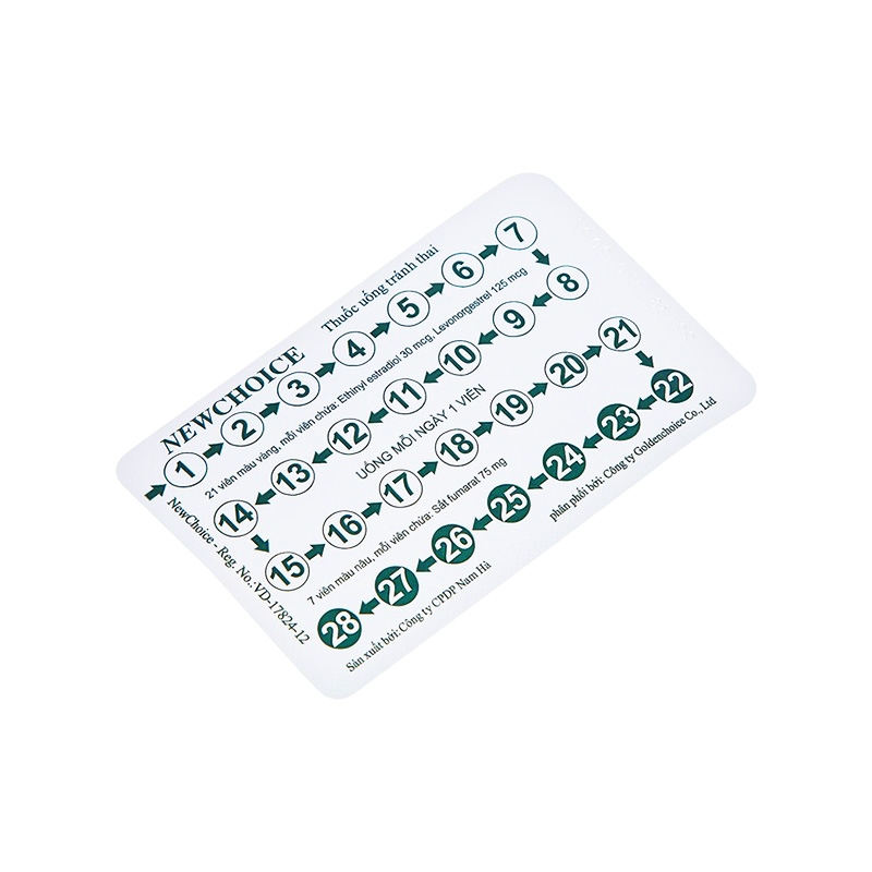 Mô tả ngắn: Thuốc tránh thai NewChoice là sản phẩm của Công ty Cổ phần Dược phẩm Nam Hà chứa hoạt chất Levonorgestrel có thể dùng để tránh thai thường nhật hay khẩn cấp (tùy vào liều dùng), vì vậy NewChoice là sản phẩm được lựa chọn bởi số đông phụ nữ Việt Nam.
