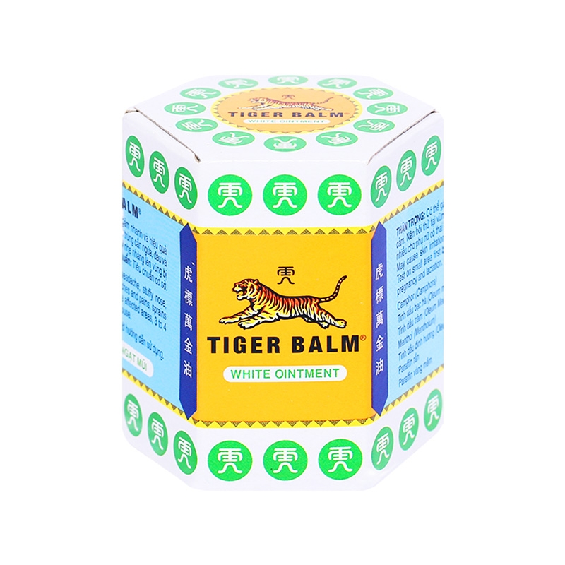 Mô tả ngắn: Tiger Balm White của Haw Par Healthcare limited là sản phẩm của Thai P.d Chemical Co.,Ltd có thành phần gồm: Camphor (Camphora), tinh dầu bạc hà (Oleum Menthae), tinh dầu chàm (Oleum Melaleucae), menthol (Mentholium), tinh dầu đinh hương (Oleum Syzygii aromatic). Thuốc được dùng làm giảm nhanh và hiệu quả các chứng đau đầu, nghẹt mũi, côn trùng cắn, ngứa đau và nhức cơ, bong gân và đầy hơi. Tiger Balm White bào chế dạng thuốc mỡ. Thuốc mỡ có màu trắng vàng, có mùi đặc trưng của long não và bạc hà. Đóng gói hộp 01 lọ 19,4 g hoặc hộp 01 lọ 30 g.