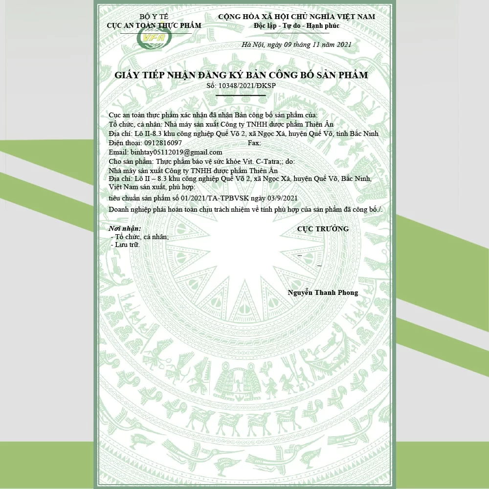 Thực phẩm bảo vệ sức khoẻ, không phải là thuốc, không có tác dụng thay thế thuốc chữa bệnh.