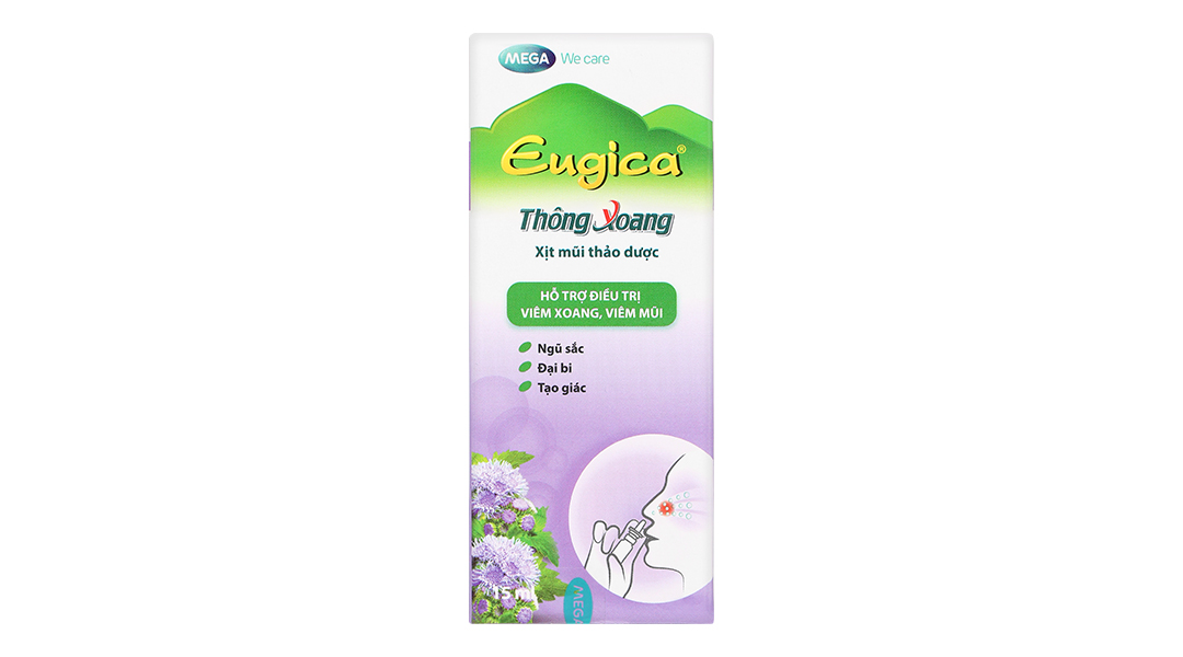 Mô tả ngắn: Thông Xoang Eugica là Xịt mũi thảo dược hỗ trợ điều trị viêm xoang, viêm mũi, viêm đường hô hấp trên, giảm nghẹt mũi hiệu quả. Đặc biệt, sản phẩm có thành phần từ dịch chiết ngũ sắc sử dụng an toàn cho người lớn và cả trẻ em từ 3 tuổi trở lên.